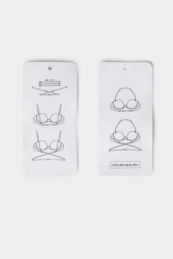 Multifunktionaler Anna-Balconette-BH aus weicher, ultraleichter Microfiber. Das Unterbrustband ist mit Silikon beschichtet, damit es besser am Körper haftet. Mit einem Satz Träger können Sie verschiedene Styles kreieren und den BH an Ihre Bedürfnisse anpassen. Es gibt vier mögliche Varianten, die alle in der beiliegenden Broschüre abgebildet sind: normaler BH, normaler BH mit tiefem Rückenausschnitt, Neckholder-BH, Neckholder-BH mit tiefem Rückenausschnitt. Außerdem wird ein Satz transparenter Framilon-Träger mitgeliefert, die unter der Kleidung unsichtbar sind. Kundinnen, die normalerweise andere Cup-Größen als B kaufen (A-C-D-E-F), können den Cup mit der auf den Brustumfang bezogenen Größe kaufen und die Passform des Oberteils durch Verstellen der Träger individuell anpassen.