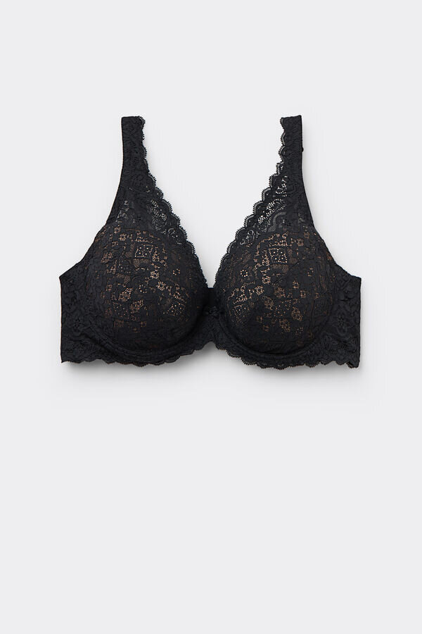 Elena Balconette-BH aus weicher Stretch-Spitze. Die Cups mit Dreiecks-Effekt verlängern sich zu den Schultern hin und bieten optimalen Halt.