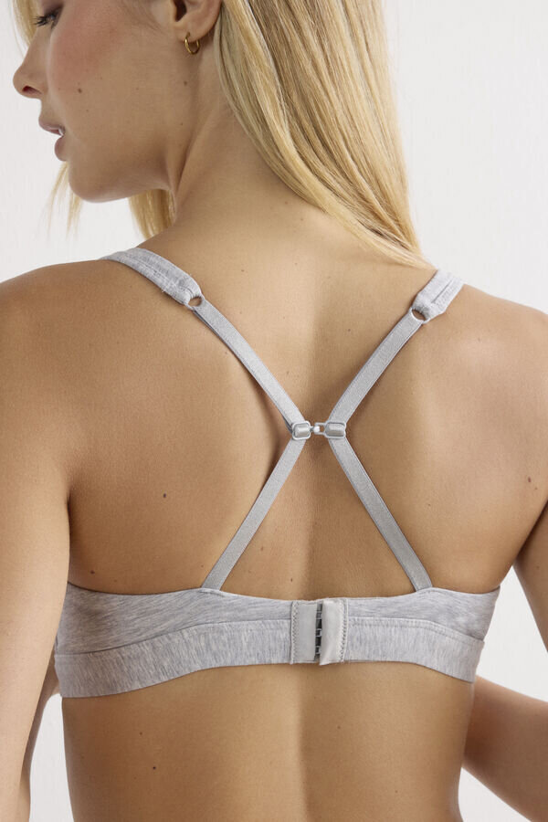 Unser Lara Baumwoll-Triangel-BH ist ein unverzichtbares Basic für jeden Tag, das mit Blick auf Weichheit und Schlichtheit entworfen wurde. Er besteht aus Stretch-Baumwolle und ist ein natürlich leichtes Teil für Ihre Unterwäscheschublade, das atmungsaktiv ist und sich angenehm auf der Haut anfühlt. Dieser bügellose, ungepolsterte Triangel-BH sorgt für eine glatte Silhouette, die sich diskret unter der Kleidung trägt, und bietet eine ausgewogene Mischung aus Weichheit und dezenter Unterstützung für den Alltag. Die breiten Träger verlaufen nahtlos vom Cup aus und sorgen für einen sauberen, stützenden Sitz, während Sie ihn mit den Verstellern am Rücken individuell an Ihre Figur anpassen können. Dezente seitliche Stäbchen und ein Unterbrustband aus Baumwolle stützen die Brust, während versteckte Mesh-Verstärkungen in ausgewählten Größen für Formgebung sorgen, wo Sie sie am meisten brauchen. Von der Stretch-Baumwolle bis zur versteckten Mesh-Stütze – jedes Detail trägt dazu bei, Ihnen leichte Formgebung und Komfort den ganzen Tag über zu bieten. Dieser BH aus Baumwolle mit breiten Trägern ist ein Kleidungsstück, das Sie immer wieder gerne tragen werden, da es Ihnen Leichtigkeit, Komfort und die Eleganz von Intimissimi in Ihren Alltag bringt.