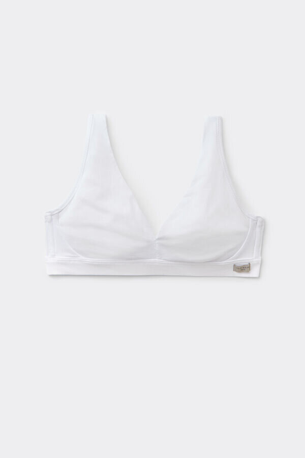Entdecken Sie unseren Lara Baumwoll-Triangel-BH, Ihr ungepolstertes Alltagsmodell aus weicher Baumwolle mit breiten Trägern, das für Komfort und mühelose Eleganz entworfen wurde.