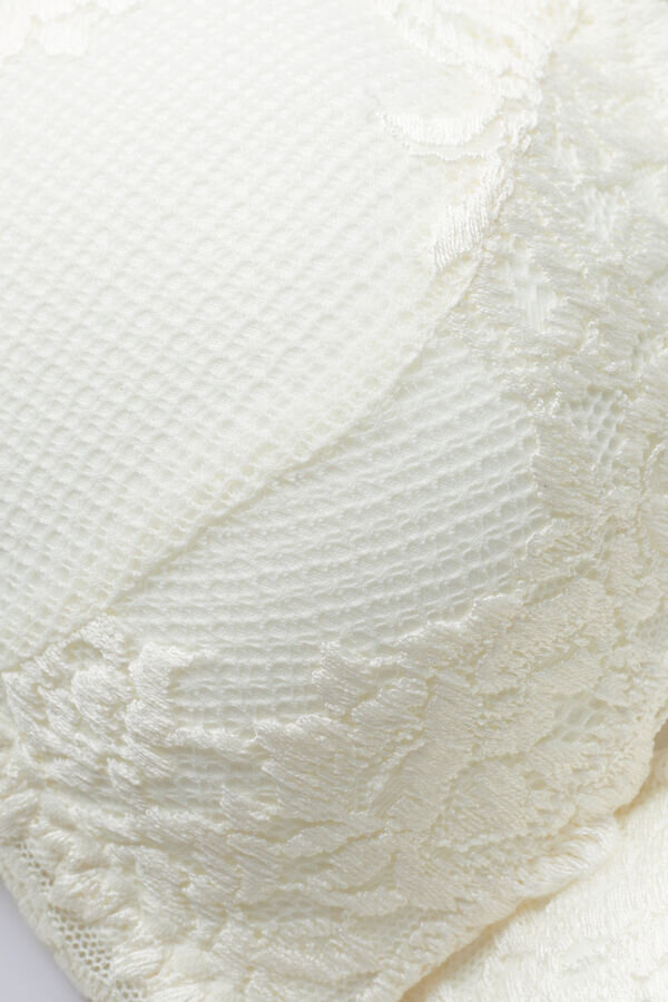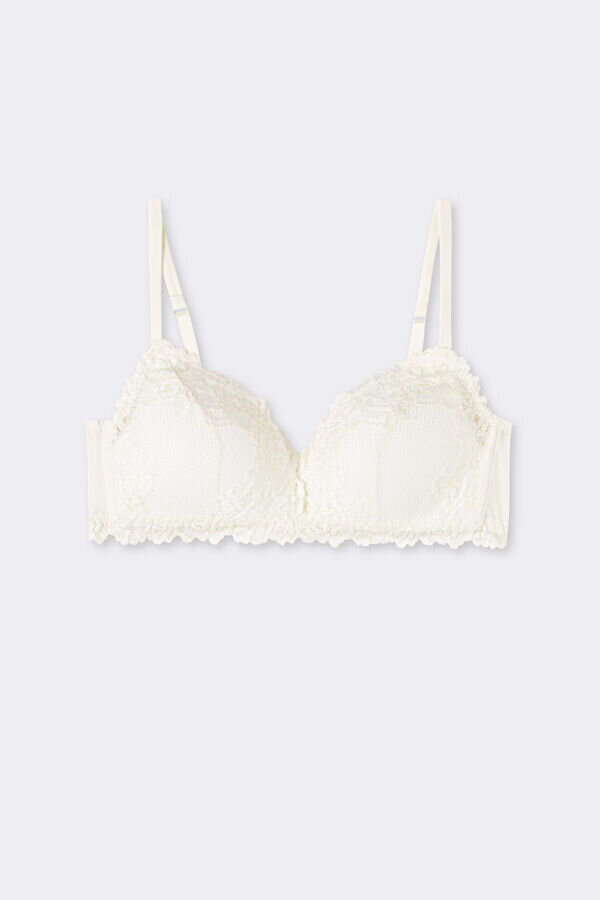 Tiziana Triangel-BH ohne Bügel mit leicht gepolsterten Cups und seitlichen Stäbchen, die den Busen sanft formen. Er ist aus raffinierter und eleganter Stretch-Spitze gefertigt, die je nach Version mit farblich abgestimmten oder kontrastierenden Blumenstickereien verziert ist. Die Träger sind mit Mikrofaser gefüttert und im Rücken verstellbar. Dieser BH formt die Brust sanft und bietet leichten Halt.