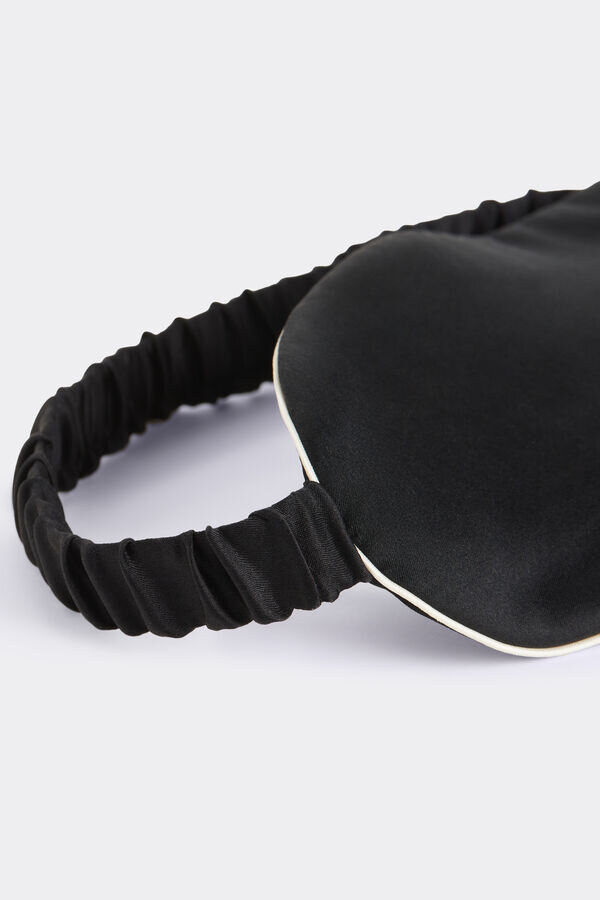 Schlafmaske aus leichter Stretch-Seide mit kontrastfarbenem Besatz. Unverzichtbares Accessoire für süße Träume.