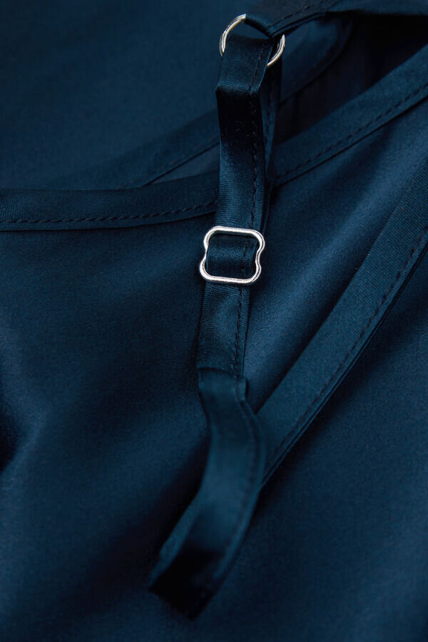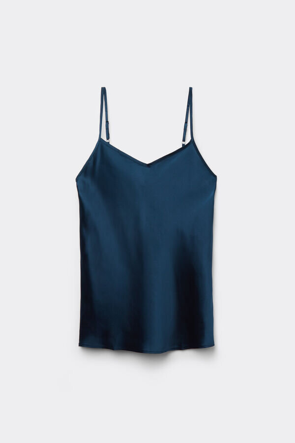 Top aus Seidensatin mit V-Ausschnitt vorne und hinten. Verstellbare dünne Träger.