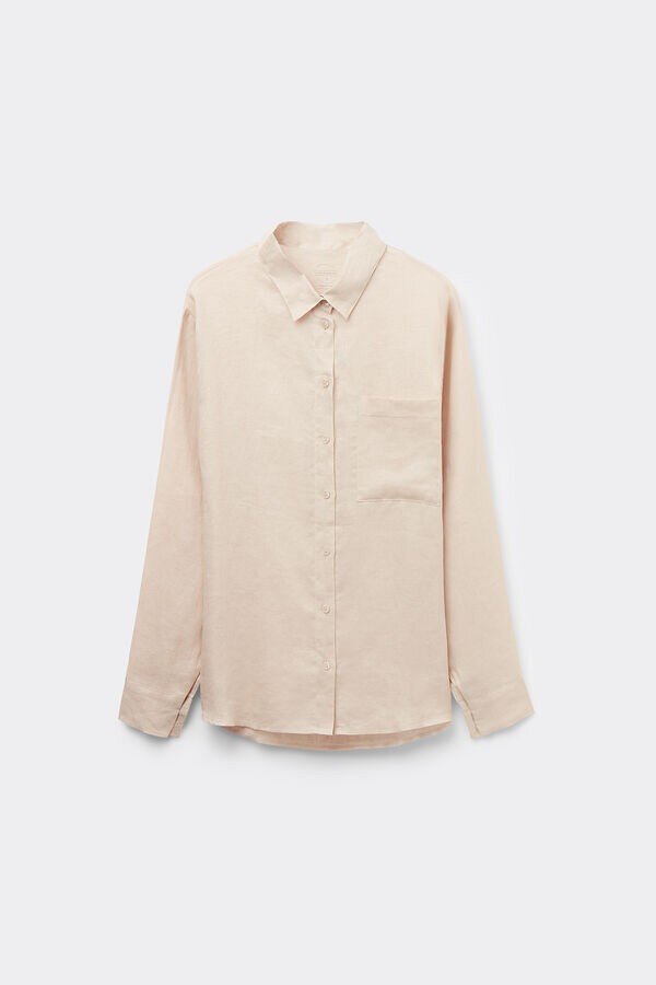 Leinenhemd mit Brusttasche und Manschettenärmeln.