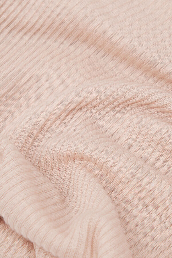 Schlank geschnittenes Oberteil aus weicher, gerippter Modal-Kaschmir-Mischung. Dank seiner sinnlichen Transparenz und seiner fließenden, drapierten Passform kann es allein oder unter einer Jacke getragen werden. Für alle, die leicht frieren, ist es ein bequemes Oberteil zum Unterziehen.