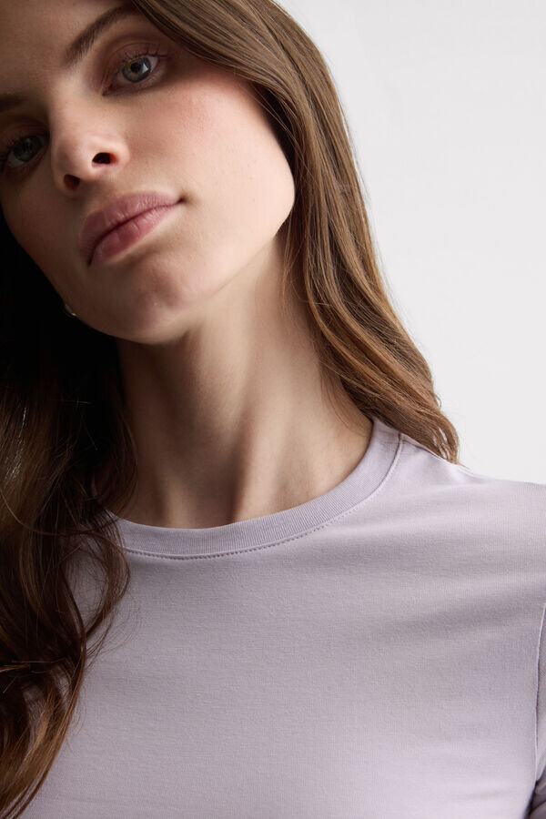 Kurzarm-Top mit Rundhalsausschnitt aus Stretch-Baumwolle Superior. Ein schlichtes und bequemes Top, ideal für jede Gelegenheit, entweder als Unterwäsche oder solo für einen lässigen Look.