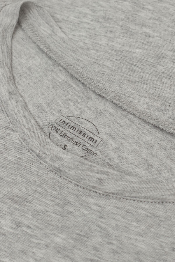 Kurzarm-Shirt mit Rundhalsausschnitt aus 100 % Ultrafresh-Baumwolle. Die hochwertige Faser ist unglaublich leicht und atmungsaktiv und zeichnet sich durch eine gute Elastizität aus, obwohl sie kein Elasthan enthält. Die Struktur des Stoffes garantiert eine gute Haltbarkeit beim Waschen. Ein schlichtes und bequemes Oberteil, ideal für jede Gelegenheit, entweder als Unterwäsche oder solo für einen gemütlichen und lässigen Look.