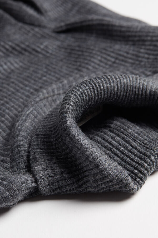 Langärmeliges, hochgeschlossenes Oberteil aus einer Woll-Seiden-Mischung.
