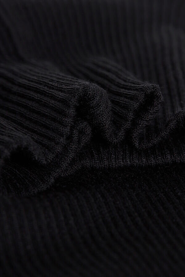 Langärmeliges, hochgeschlossenes Oberteil aus einer Woll-Seiden-Mischung.