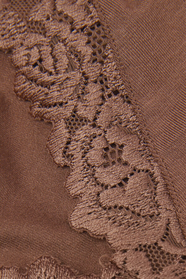 Weiches Tanktop aus Modal mit Ausschnitt, der mit einer eleganten Spitzenrüsche mit Blumenmotiv verziert ist.
