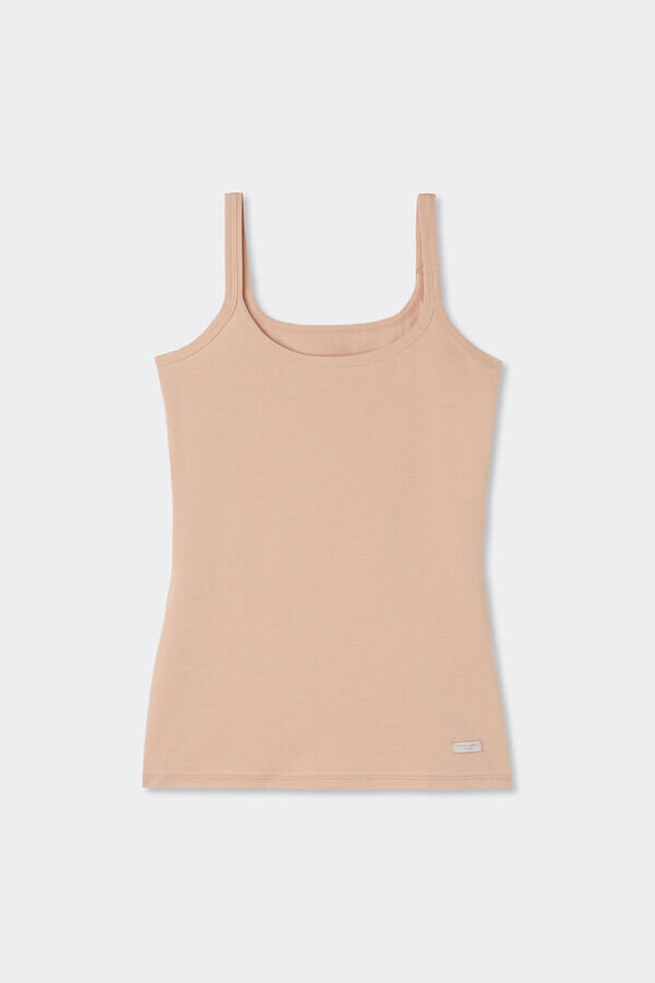 Dieses Spaghettiträger-Tanktop ist aus einer baumwollreichen Stretchmischung gefertigt und bietet ein weiches Tragegefühl mit einem klaren, minimalistischen Schnitt. Die feinen Träger und der sanft geschwungene Ausschnitt formen eine feminine Silhouette, die sich eng an den Körper schmiegt und für einen eleganten, modernen Look sorgt. Ob solo oder unter Hemden und Strickwaren getragen, dieses schlichte Spaghettiträger-Top eignet sich als vielseitige Basis für jedes Outfit. Der Stoff ist leicht dehnbar, passt sich Ihren Bewegungen an und behält den ganzen Tag über seine Form, ohne zu kleben. Weiche Bündchen am Ausschnitt und an den Ärmeln sorgen für zusätzlichen Tragekomfort, während die atmungsaktive Konstruktion die Luftzirkulation ermöglicht und das Material sich auf der Haut frisch anfühlt. Dieses Tanktop mit dünnen Trägern ist in vielen verschiedenen Farben erhältlich und ein unverzichtbares Kleidungsstück für den Alltag, das das ganze Jahr über Tragekomfort bietet.