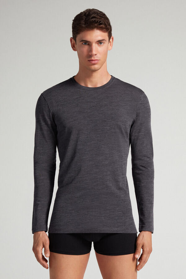 Langärmliges Oberteil mit Rundhalsausschnitt aus Merinowolle. Das hoch atmungsaktive Material sorgt den ganzen Tag über für ein trockenes Tragegefühl und ist somit perfekt für alle Jahreszeiten geeignet. Dieses Produkt ist superwash-gewaschen und muss bei 30 Grad gewaschen werden. Wunderbar weich und angenehm zu tragen. Exklusiv online und in ausgewählten Intimissimi-Geschäften erhältlich.