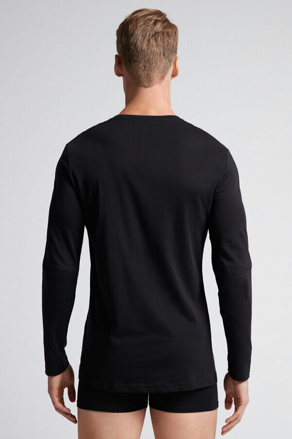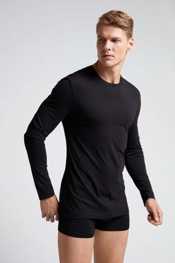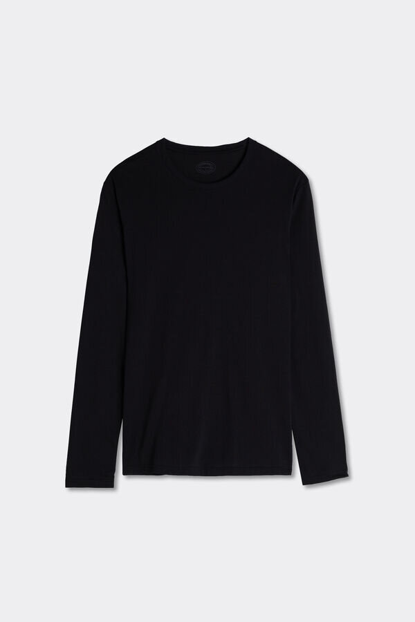 Langärmliges Oberteil mit Rundhalsausschnitt aus 100 % hochwertiger Baumwolle. Die Faser von höchster Qualität ist unglaublich weich und atmungsaktiv und zeichnet sich durch optimale Elastizität aus, obwohl sie frei von Elasthan ist. Die Struktur des Stoffes garantiert eine ausgezeichnete Haltbarkeit beim Waschen. Ein schlichtes und bequemes Oberteil, ideal für jede Gelegenheit, entweder als Unterwäsche oder solo getragen.