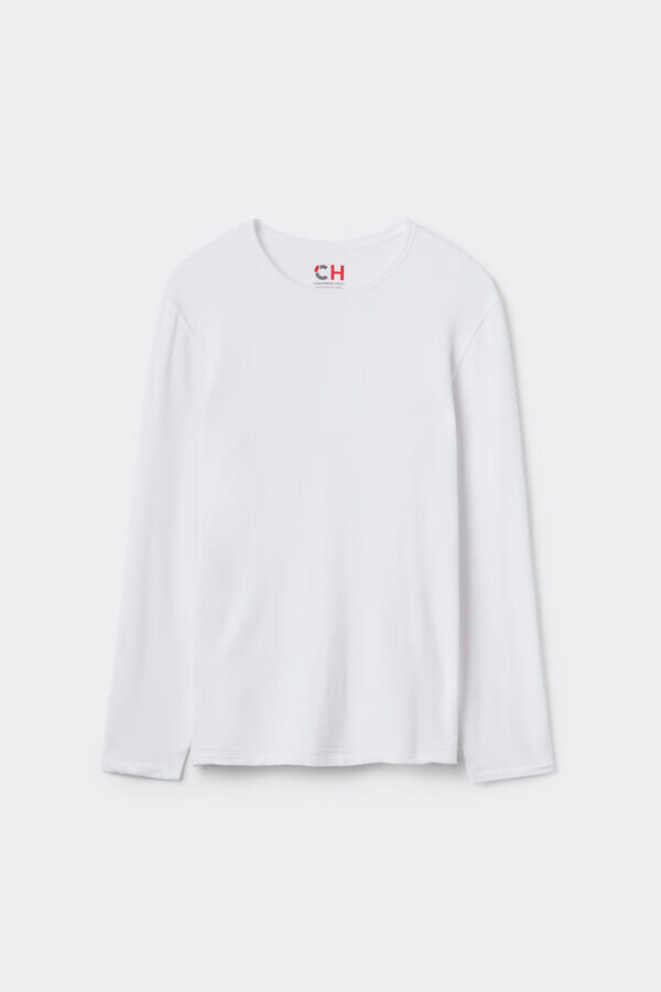 Langärmliges Rundhals-Oberteil für Herren aus einer Modal-Kaschmir-Mischung. Unglaublich weich und bequem. Das Model ist 185 cm groß und trägt Größe L. Erhältlich in den Intimissimi Man Stores.