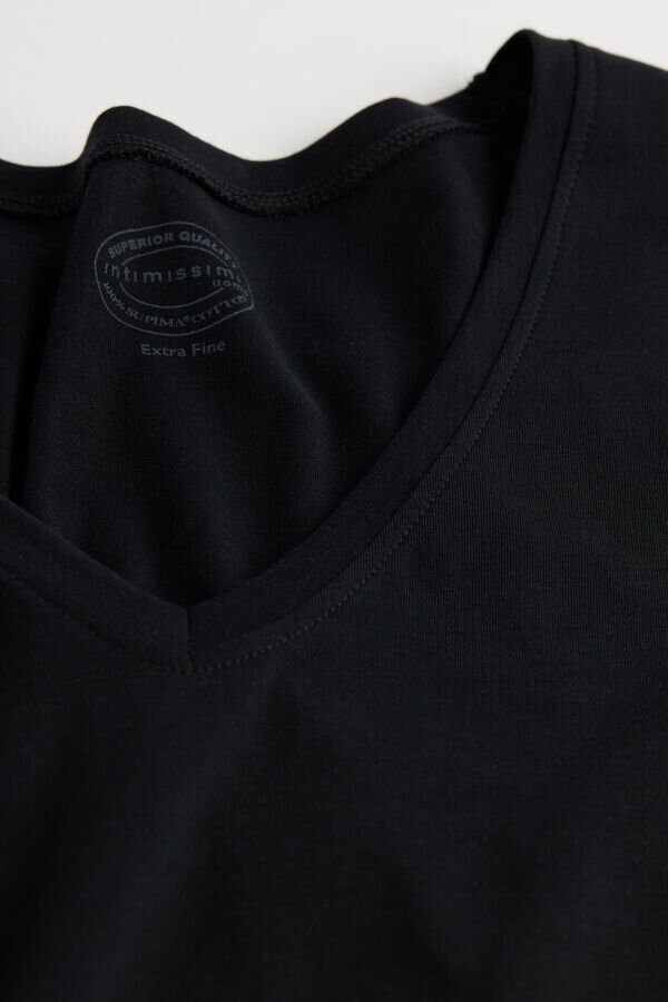 Herren-T-Shirt aus 100 % extrafeiner Superior-Baumwolle, einer Hightech-Faser von höchster Qualität, mit einem kühlen und trockenen Griff. Der extrafeine Stoff ist unglaublich leicht und atmungsaktiv und verfügt über eine optimale Elastizität. Die Einzigartigkeit der extrafeinen Superior-Baumwolle zeigt sich auch in ihrer Formbeständigkeit (ausgezeichnete Körperformung) und ihrer perfekten Passform, die genau das bietet: die perfekte Passform. Ideal als Unterwäsche oder solo zu tragen.